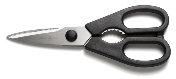 8" Heavy duty stainless steel blades designed for strength and sharpness. Nutcracker/bottle opener in handle.