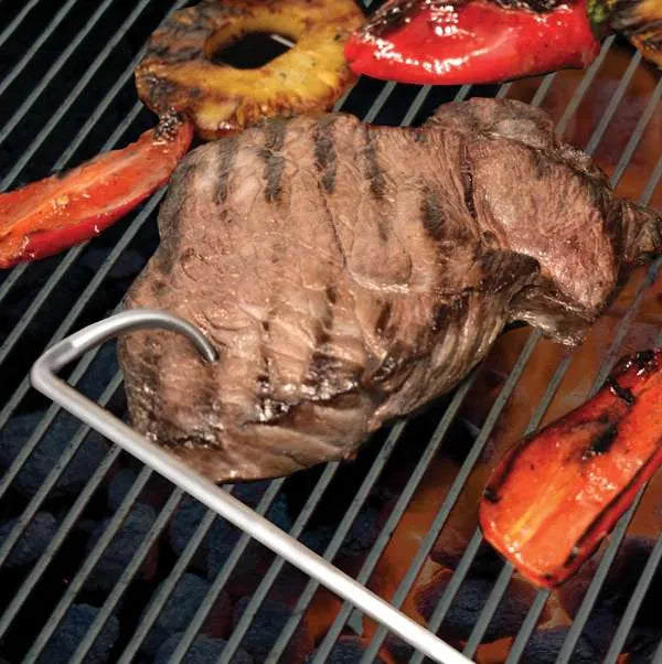 ROAST RISERS Roast without the rack with these silicone Roast Risers. Set of 6 individual legs that raise a roast, turkey, chicken, or leg of lamb away from the pan to allow for more even cooking. Simply place the stainless steel prong into the bottom of the meat and set inside any pan. Easy to use, easy to store, and dishwasher safe. Oven safe ...