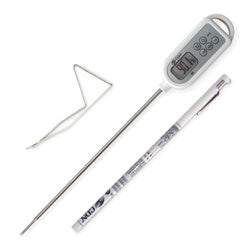 DTC450 – Digital Candy Thermometer Measurement Range:14 to 450°F/-10 to +232°C 7 preprogrammed candy stages 1 programmable all-purpose temperature stage Dual progress display Audio/visual pre-alert, target alert and over-alert 8.25″/20.96 cm stem Shatterproof ABS plastic case 304 stainless steel stem On button Auto-off after 1 hour Heat shiel...