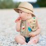 Be prepared to tackle outdoor fashion with Fred's DRESSED TO SPILL coordinating fishing vest bib and worm teether. You are sure to get a reel big laugh when Junior sports this quirky set. Two layers of 100% cotton fabric sandwich a waterproof layer of TPU to keep spills on the bib, and not on baby. The teether is made of 100% pure, BPA-free and phthalate-free silicone. Packed in a clear-topped, giftable display box.