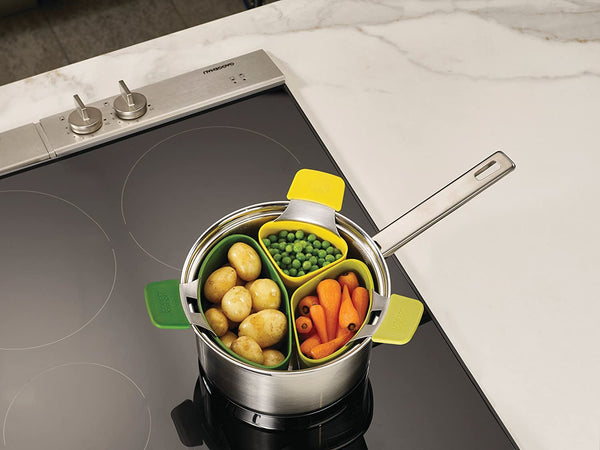 Joseph Joseph 40083 Nest Steam Stackable Steamer Basket Set with Three Compartments (3 Piece), One Size, Green
